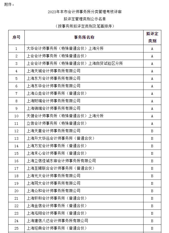 附件:2023年本市会计师事务所分类管理考核评审拟评定管理类别公示名单
